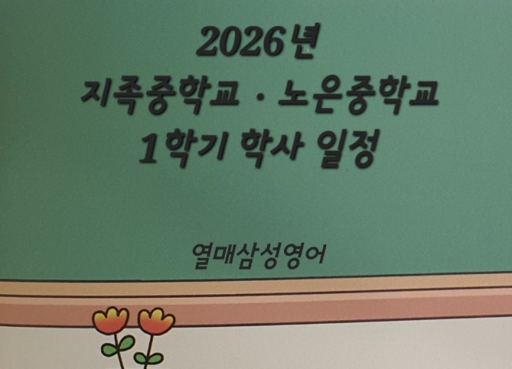 지족중학교ㆍ노은중학교 1학기 학사일정 정리(중간,기말고사) [지족동영어학원열매삼성영어]
