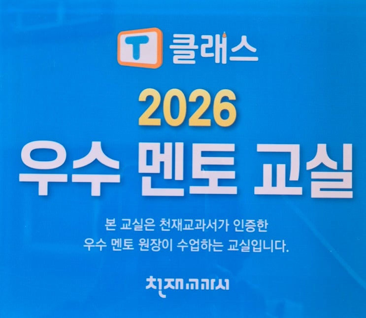 안녕하세요? 꼼꼼한 정쌤입니다. 따뜻한 봄에 따뜻한 소식으로 포스팅을 하려고 합니다. 축하해주세요^^ 저희 학원이 25년에 이어 26년에도 멘토 교실로 선정되었습니다. 셀파우등생 역곡캠퍼스 학원이 멘토교실로 선정될 수 있었던 비결, 이제부터 알려드립니다. 천재교과서 T클래스란? T클래스는 학교 교과서와 연계된 다양한 학습 콘텐츠를 통해 학생들이 쉽고 재미있게 공부할 수 있도록 도와주는 시스템입니다. 특히 초등학생에게 필요한 개념 이해 → 문제 적용 → 복습까지 체계적으로 이루어집니다. T클래스의 장점 1. 학교 교과서와 연계된 학습 학교 수업과 동일한 흐름으로 예습과 복습이 가능합니다. 덕분에 학생들이 학교 수업 시간....... <img src="https://blogthumb.pstatic.net/MjAyNjAzMTNfMTMg/MDAxNzczNDA3NjM2ODIy.6wIP7p_qcz_Z5fi5_CnP5sw2xmfSwtoFU_IVx1PQBXgg.OMN2YLg5KaCA-jr1nQFTP7ISCr4hlrGK4Fg59VjkmMog.JPEG/900%A3%DF20260309%A3%DF113239.jpg?type=s3" />