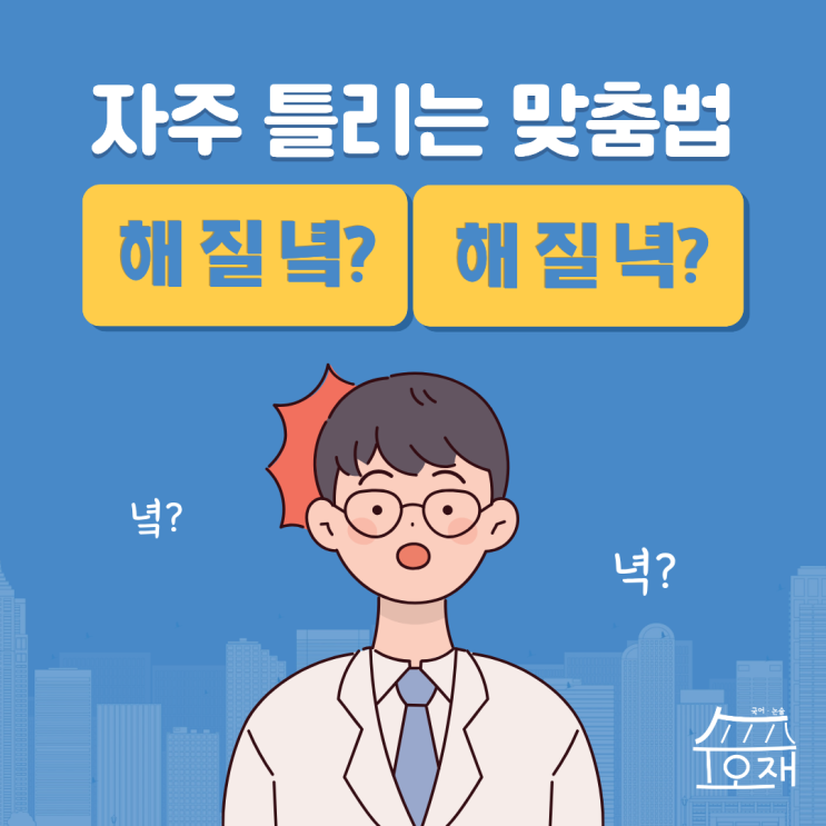안녕하세요, 부천 수오재 국어학원입니다! 해가 넘어가는 시간에 창밖을 보면 마음이 참 몽글몽글해지곤 하는데요, 이 아름다운 시간 대를 표현할 때 많은 분들이 맞춤법을 헷갈려 하십니다. 오늘은 수오재와 함께 헷갈리는 맞춤법 해질녘/해질녁에 대해 알아볼까요? 어느 첫여름의 해 질 녘, 마차 한 대가 고성의 성문으로 들어갔다. / 어느 첫여름의 해 질 녁, 마차 한 대가 고성의 성문으로 들어갔다. '해 질 녘'과 '해 질 녁' 중 어떤 표기가 올바른 것일까요? 정답은 바로 '해 질 녘'입니다! 해 질 녘 형태 [+해+지_ㄹ+녘] 명사 1. 해가 질 무렵. '해질녁'이나 '해질역'은 틀린 표기에요....... <img src="https://blogthumb.pstatic.net/MjAyNjAzMTNfNjgg/MDAxNzczMzgyNzI2MTc1.eYuGfncschP-7hGCTEdYuQ0yA2P5bvSOnjmjtnA3BDQg.xbrNWFhPNRxFjXrj9SAQ-Jo_3sKsU_pKS5GhVlnZzIEg.PNG/%C1%A6%B8%F1%C0%BB_%C0%D4%B7%C2%C7%D8%C1%D6%BC%BC%BF%E4..png?type=s3" />