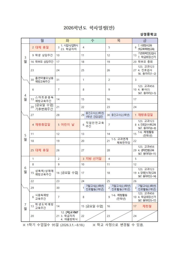 상경중수학 학사일정, 상경중내신 완벽대비