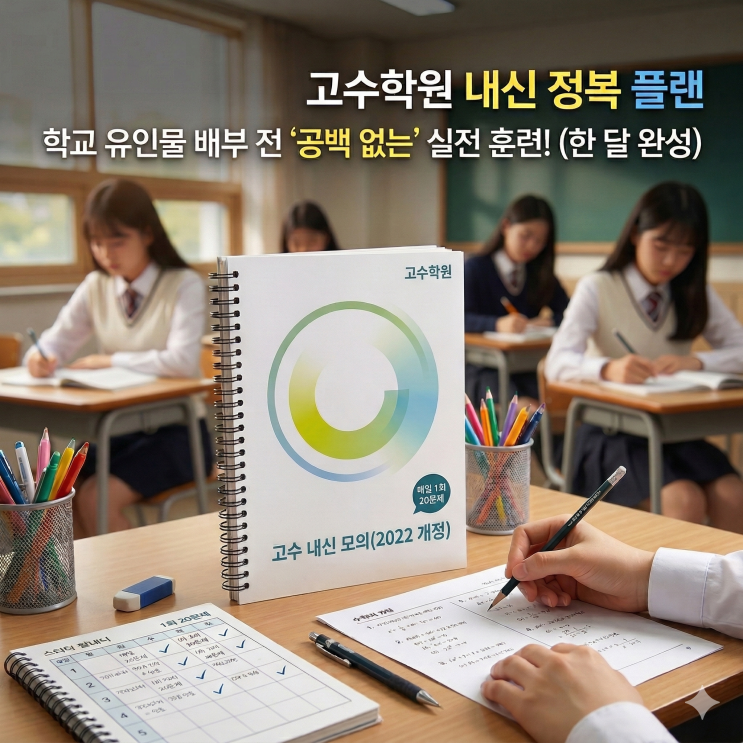 고수학원은 더욱 단단한 각오로 이번 학기 내신 정복을 위한 예열을 마쳤습니다. 경복여고 내신은 무작정 열심히 하는 것이 아니라 학교의 흐름을 미리 읽고 단계별로 대응하는 것이 전략의 핵심입니다. 지금 이 시기 고수학원이 어떤 플랜으로 움직이고 있는지 공유해 드립니다. 실력으로 채우는 3단계 로드맵 1. [지난 겨울방학] 기초 체력 다지기 (완료) 경복여고 내신은 학기가 시작되면 쉴 틈 없이 유인물과 과제가 쏟아집니다. 이를 대비해 고수학원 학생들은 지난 겨울방학 동안 이번 학기 시험 범위에 해당하는 기본 개념과 필수 문항들을 이미 완벽하게 정리했습니다. 이 단단한 기초가 있어야만 흔들리지 않는 상위권 유지가 가능합니....... <img src="https://blogthumb.pstatic.net/MjAyNjAzMDlfMjEy/MDAxNzczMDMxNDY2NTMy.bdw2BwYcZKOZJwCRqAivyYA6ArWifIUH8lo7OvO2XVgg.pKhh1_ia7x1YV6Htgrexb4_kWLeTLRS2aDd63FV26q8g.PNG/Gemini_Generated_Image_o12v98o12v98o12v.png?type=s3" />