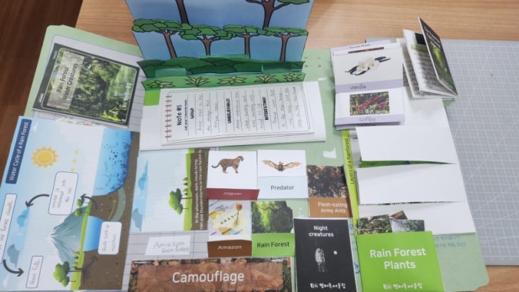이번 ERC 원서 수업에서는 Magic Tree House #6 – Amazon Adventure를 읽고 단순 독서에서 끝나는 수업이 아닌, 이해 정리 쓰기 제작 발표 까지 연결되는 프로젝트 수업을 진행했습니다. 원서를 단순히 “읽기만” 하지 않습니다 아이들은 먼저 아마존 열대우림의 특징, 동물, 식물, 층 구조, 물의 순환, 위장(camouflage) 등 책 속 정보를 정리했습니다. 단어 카드도 직접 붙이고 Jaguar / Predator / Night creatures Amazon / Rain Forest / Camouflage 등 핵심 어휘를 스스로 구성하며 내용을 구조화합니다. 읽은 내용을 내 언어로 재구성하는 과정 이게 진짜 독서 실력입니다. ✏️ 읽은 내용을 ‘쓰기’로 연결합니다 Lapbook 안에는....... <img src="https://blogthumb.pstatic.net/MjAyNjAzMDFfMjAx/MDAxNzcyMzUxMjE5NTE5.MGcfdv5eVKxISwcv7XZTdSVvv0IkK2DL2scYxm60UW4g.NjArfCDHF6Ojz25fhXw-XZpkLTAGuoE9NvsoajFgEC8g.JPEG/900%A3%DF1772351218569.jpg?type=s3" />