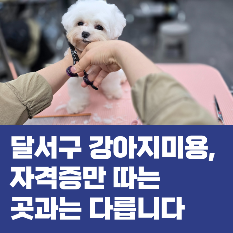 강아지 미용을 배우려고 알아보다 보면 가장 많이 듣는 말이 있습니다. 자격증은 따게 해준다. 실습도 한다. 대회반도 있다. 그런데 막상 상담을 받아보면, 자격증 수업이 있고, 실습 수업이 있고, 대회반이 있는 것과 자격증부터 대회, 실무까지 ‘연결’되어 있는 구조는 전혀 다릅니다. 많은 곳은 과정이 나열돼 있을 뿐이고, 실제로는 각각 따로 움직이는 경우가 많습니다. 자격증은 자격증 따로,실습은 실습 따로, 대회는 또 따로. 배우는 입장에서는 지금 내가 하고 있는 수업이 어디로 이어지는지 구조가 잘 보이지 않는 경우도 많습니다. 달서구에서 강아지 미용을 제대로 배우고 싶다면 중요한 건 과정의 개수가 아니라 흐름입니다. 자....... <img src="https://blogthumb.pstatic.net/MjAyNjAzMDNfODMg/MDAxNzcyNTMyNzQyNTg3.8DIBI6xhxmo_FepzYWNBt7e8KsSWX1A98g0AynXEqKwg.Cpoc8h_5c2sb141ihLpC26Bl17b3PAWXyWOtVeJ75Gwg.PNG/%BA%F1%BF%C0%BA%F1_%281%29.png?type=s3" />