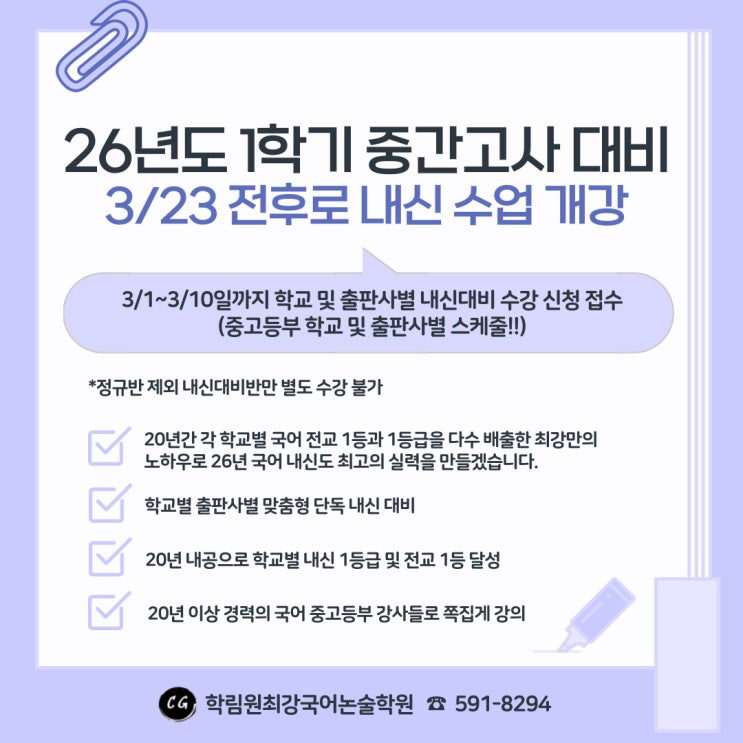26년 1학기 내신 수업 개강 안내