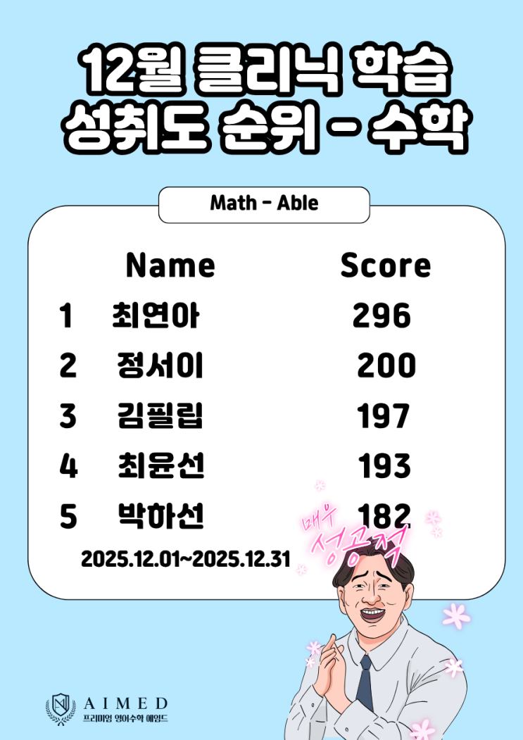 25년 12월 영어, 수학 클리닉학습 성취도 순위입니다.