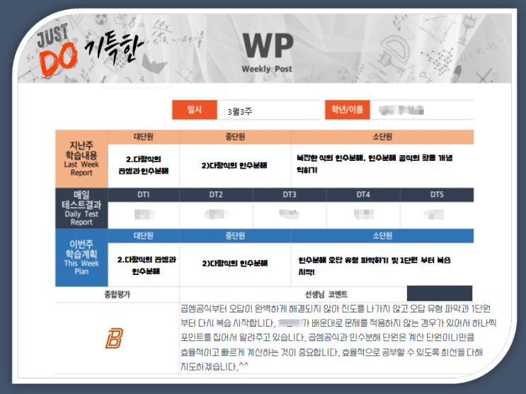 새 학기 첫 주의 첫 단추를 잘 꿰었다면 이번 주는 수학 학습의 발판이 되는 생각하는 힘을 길러봅니다. 생각하는 힘은 한두 번 연습한다고 해서 길러지는 것이 아닙니다. 매주 매 수업마다 생각 근육을 키우려고 노력해야 하는데요. 운동과 마찬가지로 꾸준히 하지 않으면 근육이 붙지 않으니 습관이 될 수 있도록 노력해야 합니다. 이번 주 학습 점검 이번 주는 새 학기 학습 내용과 과정에 조금씩 익숙해졌을 것입니다. 꾸준히 공부했던 친구들은 원래 자기 페이스를 찾았는지 점검하고, 새로운 학원에 적응하는 친구들은 아직 긴장감을 갖고 한 주를 시작합니다. 새로운 환경으로 인해 숙제를 조금 못한다든지 하는 적응단계는 이제 끝났....... <img src="https://blogthumb.pstatic.net/MjAyNjAzMjBfNjMg/MDAxNzc0MDAyMTg0ODg5.Vj3kXDd7eLLeC_Jb3ysj1GP2n5bf4sH3T3ShchEiAkkg.ApxUDuA0sELsNUjI5BtCqIQbVHm7p16PqMhAsod-idUg.PNG/3%BF%F9%BC%C2%C2%B0%C1%D6.png?type=s3" />