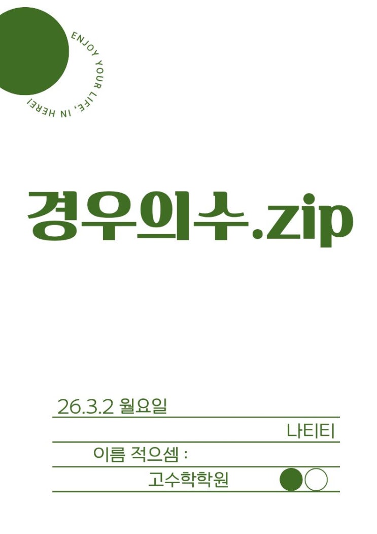 안녕하세요:) 나티티입니다~~!! 오늘은 공휴일임에도 불구하고! 우리 아이들과 함께했던 vlog를 올려보려고합니다. 방학 시작 하기 전에 아이들과 학부모님들께 약속드렸던 '경우의수' 무료 특강! 한 번에 많은 것을 담아갈 수는 없겠지만, 그래도 또 많이 담아주고 싶은 이 마음에 ㅠㅠㅠ 진짜 꽉꽉 채워 수업했습니다. 아이들에게 나눠줄 자료도 만들고! 특강 교재 표지도 직접 디자인하고~ 컬러로 인쇄해서 나눠주니 몬가 뿌듯 하더라구여? 단 한명도 졸지 않고, 처음부터 끝까지! 초롱 초롱한 눈으로 들어준 울 아가들한테 무한 감사를.....♥ 그리고, 몇일 전 단톡방에 특강 끝나고 맛있는거 사주겠다고 약속했던 터라! 아이들의....... <img src="https://blogthumb.pstatic.net/MjAyNjAzMDNfMjgx/MDAxNzcyNTA1ODgyNTYz.tNZT2udUyAFUThtQWt31yFuVkyGQ2bSDWhKQxgqHc5Ig.xRlWMWIXSbDpqz-Srrcitd3qB4FLKB86LenY85GpkzQg.JPEG/%C1%A6%B8%F1%C0%BB_%C0%D4%B7%C2%C7%D8%C1%D6%BC%BC%BF%E4..jpg?type=s3" />