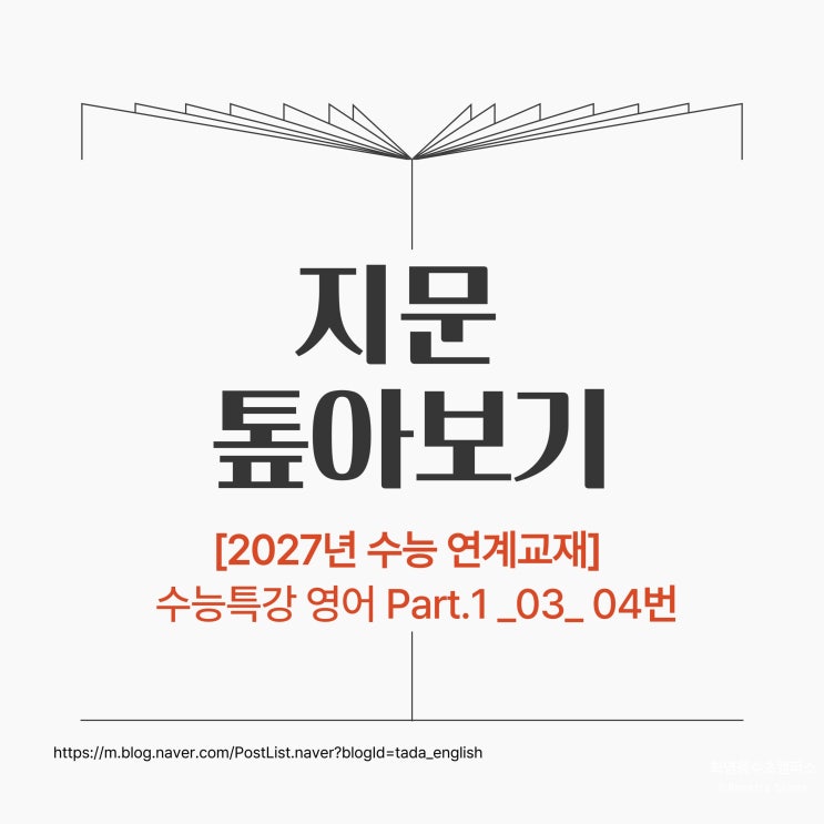 안녕하세요, 로제타스톤 영어교습소 화명 용수초 캠퍼스입니다^^ 지문 톺아보기 이번 지문은 2027학년도 수능 연계교재 수능특강 영어 3강 4번 지문입니다^^ 이 포스팅은 단순히 영어 지문을 해석하거나 문제를 푸는 데서 끝나지 않아요. 학생들이 직접 보고, 스스로 이해할 수 있도록 시각 자료와 실제 생활 속 상황을 연결해 만든 콘텐츠예요. 문장 하나, 그림 하나도 “이걸 보면 아이들이 조금 더 쉽게 이해하겠지?” 하는 마음으로 준비했답니다. 정확한 영어 해석은 이미 해설지에 잘 정리되어 있으니, 이곳에서는 내용을 쉽고 친절하게 풀어서 설명하며, 진짜로 이해하는 데 초점을 맞춰볼게요. 그럼 지금부터 시작해볼까요? 이 지문은 사....... <img src="https://blogthumb.pstatic.net/MjAyNjAzMDNfMjQ1/MDAxNzcyNTIwNDQyMzEz.ooWVPjxf8Z-JDmC2Ry_10SgB1U3FRltbA_a6kpMhue8g.l6BE5vs9L0p4h17G7VzpDOTMz2EYYUFoNgnDVe0vJ2og.JPEG/%C1%A6%B8%F1%C0%BB-%C0%D4%B7%C2%C7%D8%C1%D6%BC%BC%BF%E4_-007.jpg?type=s3" />