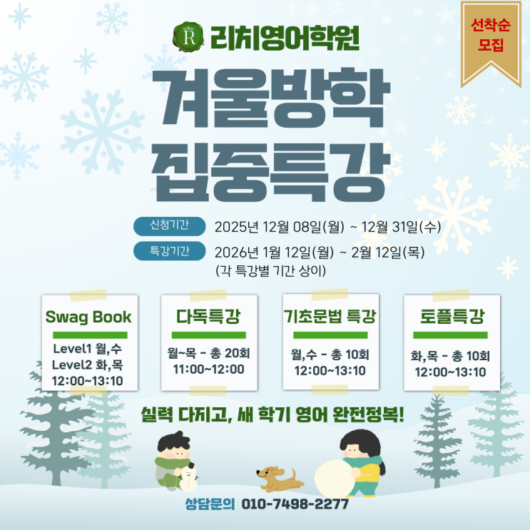 겨울방학 특강 안내 [망포동 초등영어 리치영어 학원]