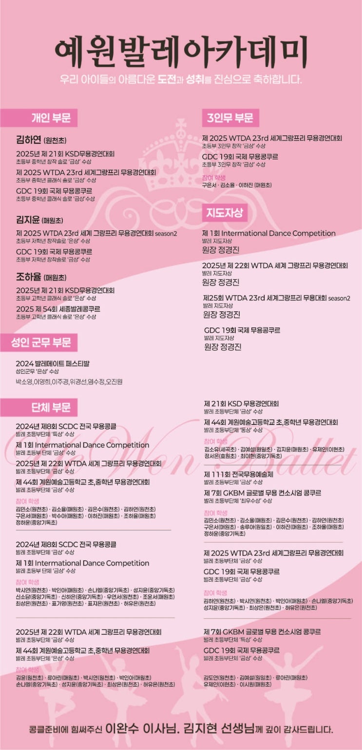 #수원발레학원 #수원유아발레 #수원초등발레 #수원전공발레 #수원성인발레 #광교발레 #광교유아발레 #광교초등발레 #광교전공발레 #광교성인발레 #아주대발레 #원천동발레 #예원발레아카데미학원 <img src="https://blogthumb.pstatic.net/MjAyNTEyMTlfODUg/MDAxNzY2MTA4NDkzNjcw.uytqrMdEqL9AY1qa8A77bWQTIgi4yVqoVqZaKjQbXQ0g.3Uyf0duP97oD7eSEgDSERHhEJVu3Y0CF3q7UxiMLZdgg.JPEG/900%A3%DF1766106482446.jpg?type=s3" />