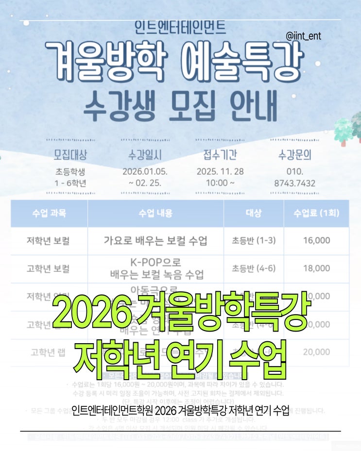 [영통연기학원] 2026 겨울방학특강 저학년 연기 수업 한눈에 모아보기!