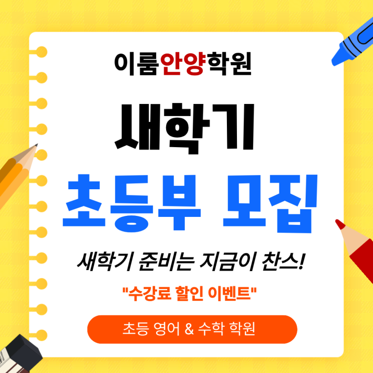 [이룸안양학원] 관양초 초등부 영어·수학 신규생 모집|기초부터 탄탄하게 |첫 달 수강료 할인 진행 중