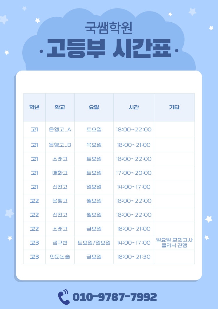 국쌤학원 중등부 · 고등부 시간표 안내 [은계지구-국어전문학원]