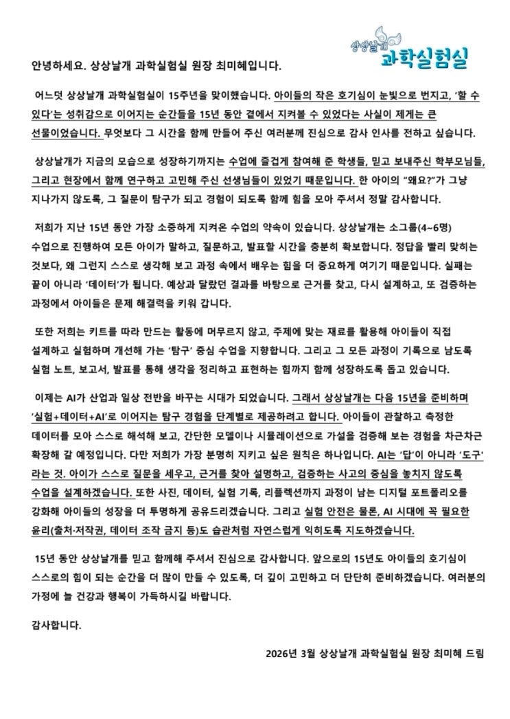 여행을 다녀온 우리 학생이 학원에 오자마자 제 손에 쥐어준 선물이 있었어요. 바로 KitKat 초콜릿 말차맛이었습니다. 여행지에서도 설쌤을 생각해줬다는 그 마음이 얼마나 고맙고 기특하던지요. “초콜릿의 달콤함보다 아이 마음의 따뜻함이 먼저 전해졌습니다. 사실 여행을 가면 가족, 친구들 선물 고르기도 바쁠 텐데 그 와중에 학원 선생님 생각까지 해줬다는 게 참 쉽지 않은 일이잖아요. 그래서 더 감동이었고, 더 고마웠습니다. 공부하느라 바쁜 와중에도 이렇게 마음을 표현해주는 우리 아이들을 보면 성적을 올리고 실력을 키우는 일도 중요하지만, 마음을 나눌 줄 아는 따뜻한 사람으로 자라고 있구나 하는 생각에 원장으로서 큰....... <img src="https://blogthumb.pstatic.net/MjAyNjAyMjVfMjIx/MDAxNzcxOTgzNDYxNzY0.-abdM_s7pJqX7bNNjd-m1PJzV_xRb_pwxknY894dup0g.FLlVSA_CvJWiQ2dJ0Xw6LpK4VCquJqtVWV-uSoXy_iEg.JPEG/%C1%A6%B8%F1%C0%BB_%C0%D4%B7%C2%C7%D8%C1%D6%BC%BC%BF%E4._%287%29.jpg?type=s3" />