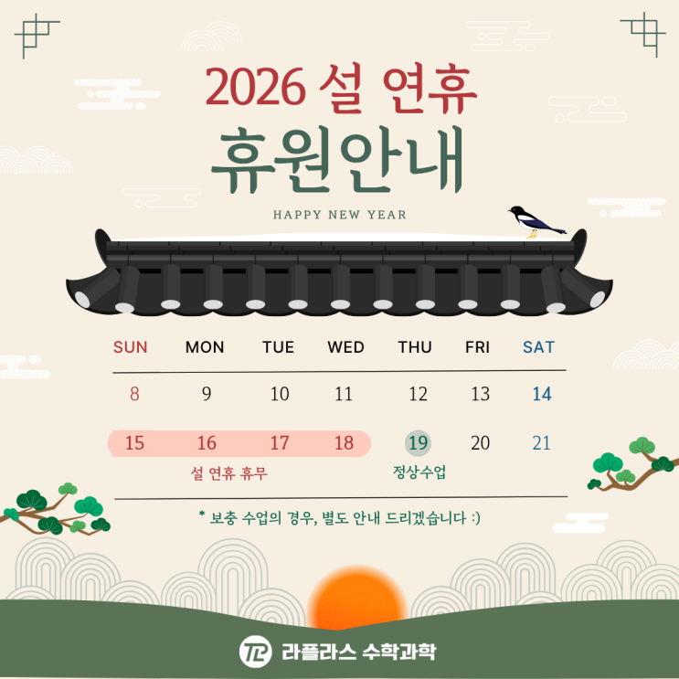 [라플라스 수학학원] 설 연휴 휴무 안내☀️
