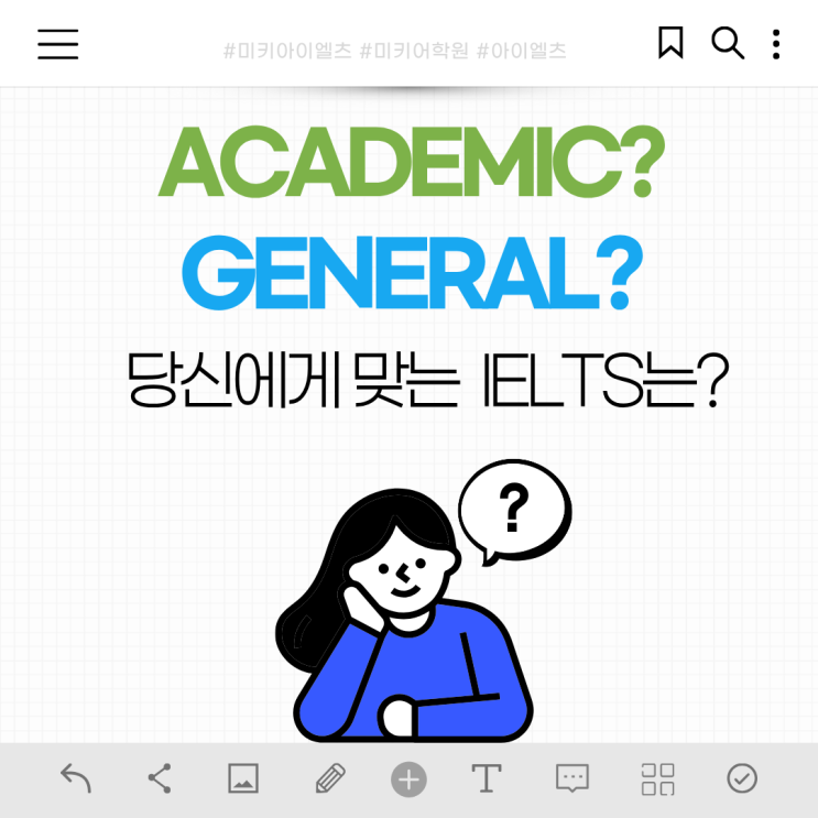 안녕하세요 여러분 : ) 미키아이엘츠 입니다. 어느덧 12월 중순, 올해도 이제 한 달도 채 남지 않았네요. 시간이 참 빠르게 흘러간다는 걸 새삼 느끼게 됩니다. 바쁘게 달려온 한 해를 차분히 정리하면서, 남은시간은 조금 더 여유롭게 마무리하시길 바랍니다. Take a breath, reflect on the year, and get ready for what’s next. Academic? General? 아이엘츠 공부를 시작하시기 전에 많은 분들이 가장 먼저 고민하시는 부분이 바로 Academic이냐 !, General이냐 ! 하는 선택인데요. 목적에 따라 선택해야 하는 모듈이 달라지기 때문에 처음부터 정확히 알고 시작하는 것이 매우 중요합니다. 오늘 포스팅에서는 ✔ IELTS Academic과 General의....... <img src="https://blogthumb.pstatic.net/MjAyNTEyMTVfMjY2/MDAxNzY1NzgwNzc2ODcx.UqbkfQ3ybcj4AKyRolKH1Vf0vPsnsPzu9bXrFokvZg8g.ISZhtT5kNKWTHqJZp8mxEzNnRN7Gvr2JRQZizrGzwUIg.PNG/1.png?type=s3" />