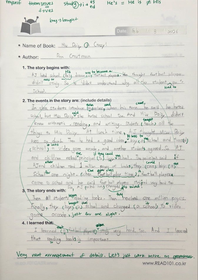 Best Writing of 리드101송도 ┃#1 My Weird School-Miss Daisy Is Crazy (2026.02.03)