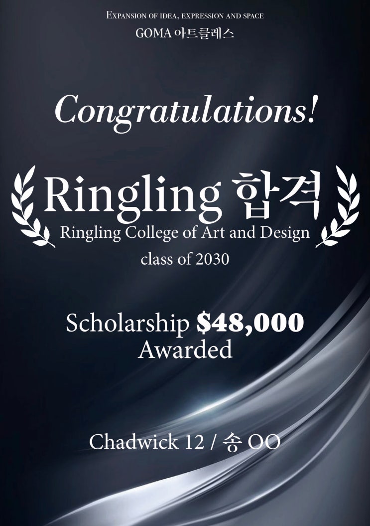 송도 1공구 미술학원 고마아트클래스 합격 소식 / Ringling 장학금 합격 / 송도유학미술 / 송도영어미술 / 채드윅, CMIS 미술 / 송도유학미술포트폴리오 / 국제학교미술