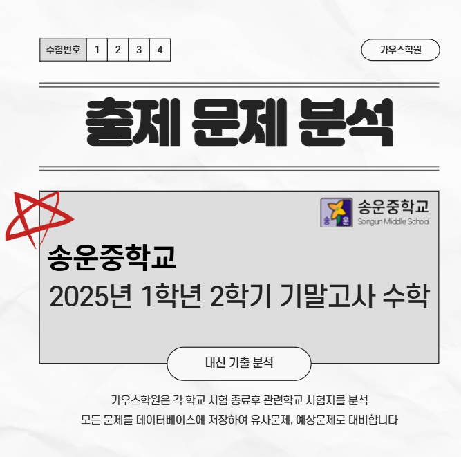 정왕동 영어학원 수학학원 I 송운중학교 2025년 1학년 2학기 기말고사 수학 기출 분석 I 영수학원 추천