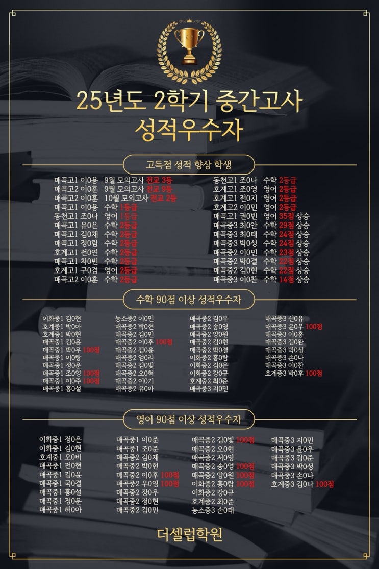 25년 2학기 중간고사 성적우수자를 공개합니다!! / 울산 북구 매곡동 영어학원 중산동 수학학원 더셀럽학원