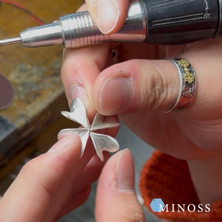 신사역 가로수길에 위치한 미노스 왁스카빙_주얼리 공방에서는 다양한 주얼리/액세서리들이 제작되고 있습니다 오늘은 실버를 활용한 오브제를 만드는 시간! 그 과정을 함께 만나볼까요? 단단한 하드 왁스를 깎아 만든 플라워 바람개비! 언뜻 보면 네잎클로버 같기도 한 게 정말 예쁜 조각입니다! 기계가 아니라 사람이 직접 손으로 깎고 다듬는 것인데도 대칭이 정말 아름답지 않나요? 이런 대단한 실력을 가지고 있는 학생이었다니~~ 조각이 완성되었다면 주물을 맡겨야 하는데 그전에! 표면을 다듬어 매끄럽게 해주면 이제 진짜 완성~~ 기다리고 기다리던 조각의 주물이 나왔다는 소식에 당장 달려가 찾아왔죠 ㅎㅎ 크기가 작고 곡면이 많기 때....... <img src="https://blogthumb.pstatic.net/MjAyNjAyMjVfMTgx/MDAxNzcxOTgzMjU1MTU2.I4cr0XiUHS9auI3r4EAMS_Bv-ccohHyb9etIV5C1Wv0g.-yHFq0aWfO3Ts0Wp3Q5asLX6Gbj0aGSHqknBpNqcRewg.JPEG/IMG%A3%DF4996.jpg?type=s3" />