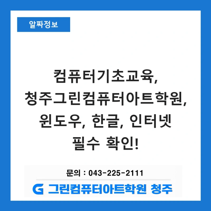 컴퓨터기초교육, 청주그린컴퓨터아트학원, 윈도우, 한글, 인터넷 필수 확인!