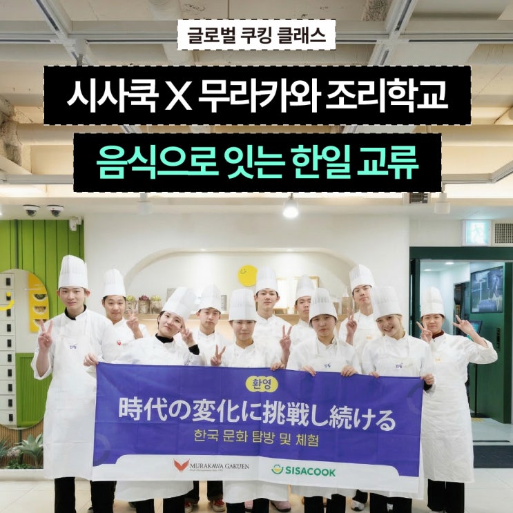 요리를 통해 문화를 나누는 특별한 시간이 시사쿡에서 펼쳐졌어요 이번에는 일본의 무라카와 조리학교 학생들이 한국을 방문해 시사쿡요리아카데미학원에서 함께 한식원데이클래스를 체험했답니다! 요리는 언어가 달라도 자연스럽게 소통하게 해주는 특별한 매개잖아요 서로 다른 나라에서 왔지만 같은 재료를 다듬고, 같은 냄새를 맡고, 같은 음식을 맛보는 순간만큼은 정말 하나가 되는 느낌이 들었죠 이번 수업 역시 단순한 요리 실습이 아니라 한국과 일본의 음식 문화를 교류하는 의미 있는 시간으로 진행됐어요 멀리 일본에서 온 학생들이라 그런지, 한식원데이클래스 수업이 시작되기 전부터 설레고 기대하는 분위기가 가득했답....... <img src="https://blogthumb.pstatic.net/MjAyNjAzMTdfMjM2/MDAxNzczNzI5OTgzOTgz.F9KuNqe7pXyeWmovCF_ZLiBoqFSz95EY54R_ztJNoqAg.SabXW1VR-KI-BinNBf28nVAjTDoWHbZJerFYDUEn334g.JPEG/%B4%EB%C1%F6_1-100.jpg?type=s3" />