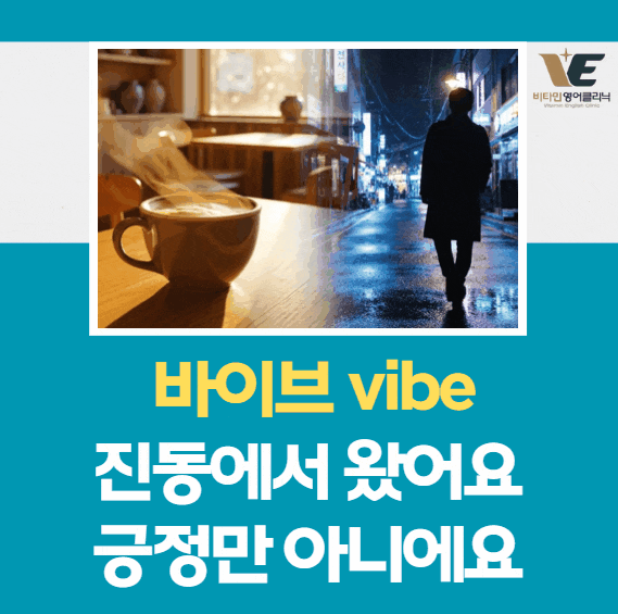 "바이브 좋다", "바이브가 맞다", "이 공간 바이브 미쳤다" — 유튜브와 SNS에서 하루에도 수십 번 들리는 말이에요. 그런데 영어권에서 실제로 쓰는 vibe, 우리가 쓰는 방식과 꽤 다릅니다. 어원부터 짚으면 이 단어가 왜 그런 의미를 갖게 됐는지, 그리고 한국에서 어떻게 변형됐는지 한눈에 보입니다. vibe는 vibration(진동)의 줄임말입니다. 물리적 진동이라는 뜻에서 출발해 1960년대 미국 히피 문화를 거치면서 "어떤 사람이나 장소에서 느껴지는 에너지, 분위기"라는 뜻으로 자리 잡았어요. Merriam-Webster 사전은 vibe를 이렇게 정의합니다. 이 정의에서 핵심은 "surround"예요. 감....... <img src="https://blogthumb.pstatic.net/MjAyNjAzMTZfMTE0/MDAxNzczNTg3NzAwNTg2.3gZ1IYRUv5AjpIj0T7UeKky8TtXbSFzBNHSkc-2CkBEg.hC_MKNI3GSnZCdPb_SlGg33yinl5bkiMYGYp739GNFsg.GIF/1.gif?type=s3" />