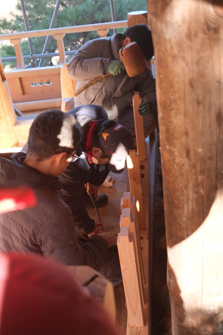 열심히 부재를 깎고 있는 학생분들 열심히 깎아서 만든 땀의 결과물들 이번에는 창을 만들고 있습니다. 창살과 울거미가 만나서 하나의 창이 만들어집니다. 부재를 끼워 넣고 있는 학생분들 직접 조각한 부재까지 끼워 넣고 마지막 부재까지 끼워 맞춰주면 이렇게 완성이 됩니다. 한편 다른 곳에서는 교수님과 다른 학생분들이 반자를 맞추고 있습니다. 가로로 먼저 고정을 시키고 이어서 세로를 맞추는 모습. 마지막은 반자 위에 단열재를 넣는 작업을 하는데 가운데 무게 중심이 쏠려서 무너지지 않기 위해 고정을 한 뒤 천장을 만들어 주고 단열재를 덮어줍니다. 마지막 실습은 전통 벽체를 직접 만들어 보는 시간입니다. 직접 흙과 모래, 볏....... <img src="https://blogthumb.pstatic.net/MjAyNjAzMTNfMjg1/MDAxNzczMzgzOTAyOTU5.MZSqHtr2DCjP8CdbRYYw1vVIV4XQSh7MCibpmmoWS2gg.I6VyCRkO_DqLkySo8VtZTsCdECiNGpy2rJwxVbFZWA0g.JPEG/%B1%D7%B8%B0%C8%A8_%BD%C7%BD%C0_%2842%29.JPG?type=s3" />