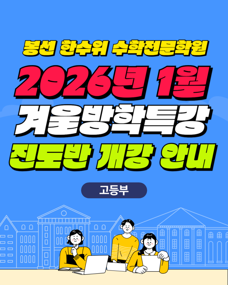 봉선동 고등수학 한수위 수학전문학원 제5525 안녕하세요. 입시의 흐름을 정확히 읽고, 학생 개개인의 실력을 전략적으로 끌어올리는 봉선동 한수위 수학학원입니다. 2026학년도 수능이 마무리되고, 수시, 정시 합격 소식이 하나 둘 들려오는 요즘, 그동안 흘린 땀과 노력의 결실이 맺어지는 순간마다 겨울의 찬 공기 속에서 따뜻한 울림이 전해집니다. 아이들의 이뤄낸 성과는 단지 결과가 아니라, 그 과정을 함께한 우리 모두의 성장 기록입니다. 봉선동 한수위 수학학원은 입시 학원으로 수년간의 누적 데이터, 개관적인 지표, 그리고 열정적인 강사진을 바탕으로 매해 수많은 학생들의 수학 성장을 이끌고 있습니다. 고등학생들에게 ‘겨울방....... <img src="https://blogthumb.pstatic.net/MjAyNTEyMTlfMTA0/MDAxNzY2MTIyNTAxMTQx.zBqNPSSnpwBpThJsJEVmu_LT913IKyCyYCV7T22PGZEg.PKiMf3gnK1QD1MIkzNL_9-59gQio4gmtjpf5WSycGxYg.PNG/001.png?type=s3" />