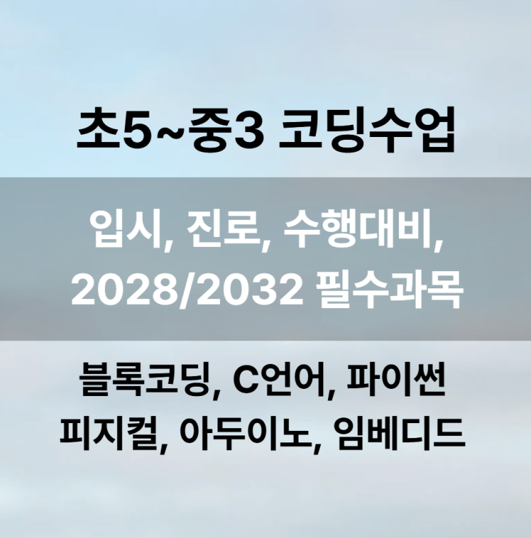 초5~중3 코딩수업 - 입시, 진로, 수행대비, 2028/2032 필수과목 <블록코딩, C언어, 파이썬, 피지컬, 아두이노, 임베디드>