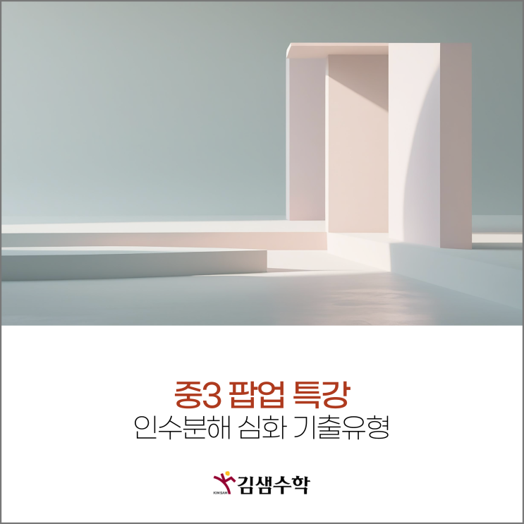 수학의 정답, 김샘 수학입니다! 3월 28일 토요일 12시, 중3 학생들을 위한 '인수분해 심화 기출 유형' 팝업 특강을 진행합니다. 중3 수학의 꽃이자 이차방정식과 이차함수로 가는 필수 관문인 인수분해! 복잡한 다항식을 한눈에 꿰뚫어 보는 안목이 필요합니다. 고등 수학의 50% 이상을 차지하는 연산의 핵심을 미리 완성할 수 있는 짧고 굵은 기회입니다. 왜 '인수분해 심화 기출'인가요? 인수분해는 고등 수학 전반에 걸쳐 사용되는 강력한 도구입니다. 단순히 공식을 적용하는 수준을 넘어, 치환이나 내림차순 정리 등 고난이도 테크닉이 필요한 기출 유형들을 정복해야 합니다. 이번 특강에서는 인근 학교 기출 중....... <img src="https://blogthumb.pstatic.net/MjAyNjAzMjNfNCAg/MDAxNzc0MjQ4MTc1MjMw.Oz7LSpbKVtWj1dpQe6pMAHJpDKz4vhwCMGnWzwrte4Yg.d1YjKSn0lpIbue7Dbx8LSl9a9R25W2BM4pcFU1ngaUkg.PNG/%BA%ED%B7%CE%B1%D7_%B8%DE%C0%CE_%2812%29.png?type=s3" />