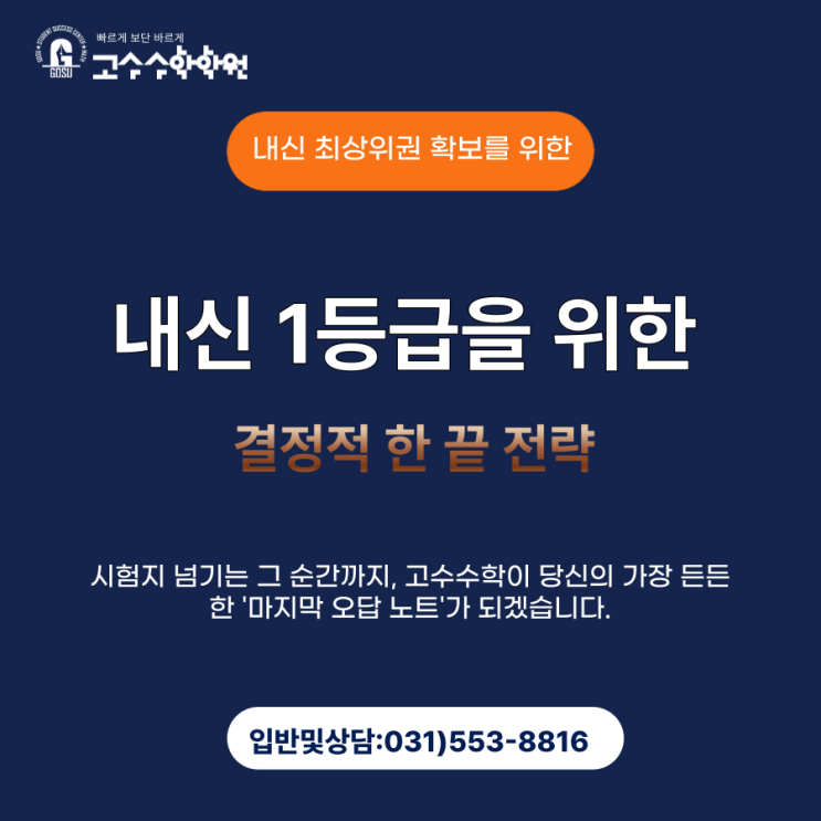 [고수수학수택본원 고등부] 내신1등급을 위한 결정적 한끝 전략