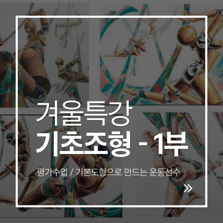 안녕하세요 평촌학원가에서 디자인, 애니 잘보내는 학원 미대입시 미술학원 평촌씨앤씨 애니스타 미술학원입니다. 이번 포스팅은 디자인 1학년 특강 수업을 가지고 왔습니다. 상위권대학 실기를 대비 기초조형평가수업 진행 이 유형은 단순한 묘사능력보다 위 4항목들을 더욱 중요하게 평가합니다. 이번 겨울 특강에서는 건식재료(연필, 색연필)만을 사용하여, 기초조형평가 유형을 집중대비해 보았습니다. ※겨울특강에서만 운영되는 심화 과정입니다. [ 아래 사진을 눌러 상담예약하기 ] 수업 주제 겉으로 보기에는 '인체 드로잉'처럼 보이지만, 이번 수업의 핵심은 인체묘사가 아닙니다. 기본도형을 이용해 인체를 구조적으로 해석....... <img src="https://blogthumb.pstatic.net/MjAyNjAyMjhfODYg/MDAxNzcyMjUyMzU4Njc5.hIpAzlypmI8gWoW73Ud3lCKEAYqn7OeDjRB4UWp29ZQg.Jy7SeXVk2fKNfPTjKutWqbYJ3iLn6sFwxKAMW3uEowcg.PNG/%BD%E6%B3%D7%C0%CF_%28%BA%ED%B7%CE%B1%D7%BF%EB%29.png?type=s3" />