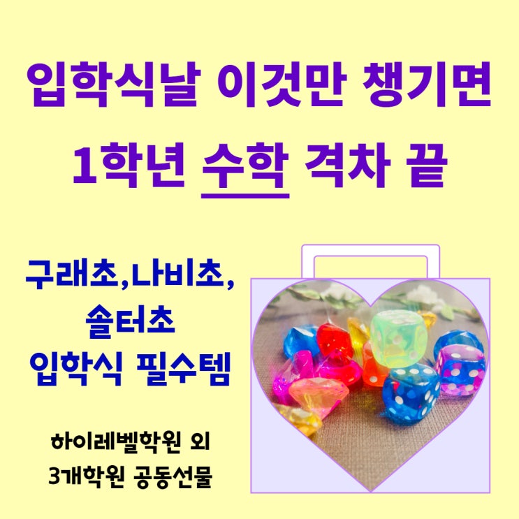 3월 3일, 아이들의 첫 시작입니다. 입학식은 설레지만 부모님 마음속에는 이런 질문이 생깁니다. “수학은 언제부터 준비해야 할까요?” “연산은 괜찮을까요?” “아직 학원은 이른 걸까요?” 많은 학부모님들이 1학년은 괜찮겠지 생각하시지만, 실제로는 이 시기에 ‘수 감각’이 크게 벌어집니다. 그래서 하이레벨학원이 준비했습니다. 이번 입학식에서는 같은 건물의 영어·논술·미술 학원과 함께 나비초등학교,구래초등학교,솔터초등학교 입학생 학부모님들을 위한 선물 꾸러미를 드립니다. 아이들이 재미있게 숫자를 접할 수 있는 보석게임 교구와 활용 방법 QR 영상, 그리고 연산 진단 안내까지 함께 드립니다. 하이레벨학원은 ✔ 초등 사....... <img src="https://blogthumb.pstatic.net/MjAyNjAyMjdfNzQg/MDAxNzcyMTg2MTkyMTc3.neZ9Sd4HEBRxSWig9A_UW_6xqS_sCMdicHuH3Z8aDacg.0dRrDhCze7JdfTIzmN_A8B4e8uTcZYQu8mbHupYdgo4g.JPEG/%C0%D4%C7%D0%BD%C4%C8%AB%BA%B8%B2%D9%B7%AF%B9%CC_1.jpg?type=s3" />