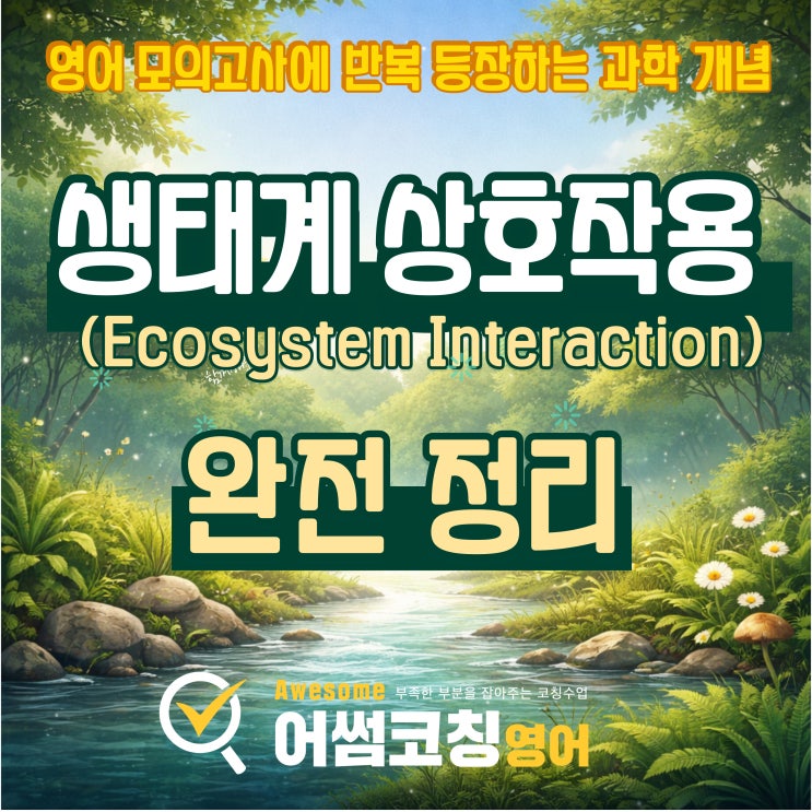 영어 모의고사에 반복 등장하는 과학 개념 Ecosystem Interaction (생태계 상호작용) 완전 분석 최근 고1~고3 영어 모의고사 및 EBS 연계 지문을 분석해 보면, 단순 서사형 글보다 과학적·사회적 개념을 설명하는 ‘개념형 독해 지문’이 꾸준히 출제되고 있습니다. 앞서 살펴본 신경가소성은 “뇌는 경험에 따라 재형성된다”는 구조를, 관심경제는 “관심이 자원으로 거래된다”는 사회 구조를 설명했습니다. 그리고 이번 주제는 그 흐름을 과학 영역으로 확장한 사례입니다. 바로 Ecosystem Interaction(생태계 상호작용) 입니다. 이 개념은 개별 생물이 아니라 ‘관계’와 ‘시스템’을 중심으로 사고하도록 요구하는 지문입니다. 결국....... <img src="https://blogthumb.pstatic.net/MjAyNjAyMjZfMTEx/MDAxNzcyMDY0OTg4NTYz.N0Q5JA9dWSCpam4mpCFxKiFXxac2zv51uLJqzaemGncg.ep-LuPA1YaOOJu3hkGDwuG2peYWHlJlrhKtKTABmxKUg.JPEG/%BB%FD%C5%C2%B0%E8_%BB%F3%C8%A3%C0%DB%BF%EB.jpg?type=s3" />