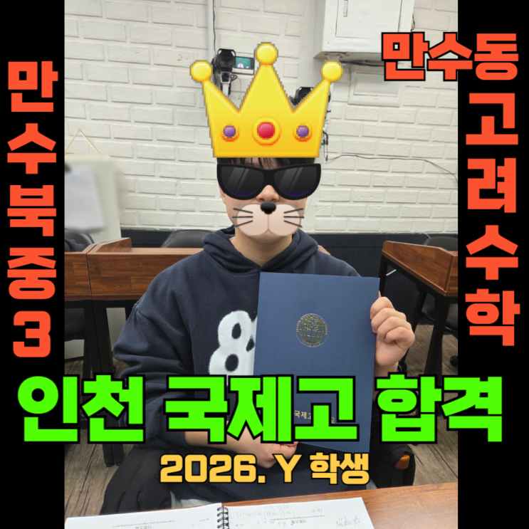 안녕하세요 성적이 오르는 만수동 수학학원 고려수학 캡틴샘 인사드립니다 오늘은 인천 국제고에 합격한 y 학생에 대해서 소개해 드리겠습니다 y 학생은 만수북중에 재학중입니다 만수북중의 인천국제고 진학을 살펴보면요 2024 학년도 - 진학실패 2025 학년도 - 진학실패 지난 3년간 합격생이 없다가 2026년도에 오랜만에 합격생을 배출했습니다 주변 만수중 만수여중 숭덕여중 등을 살펴보아도 올해 인천국제고 합격생을 배출한 곳은 만수북중밖에 없네요 훌륭한 업적이 아닐수 없습니다 ^^ 오늘 이 블로그에는 어떻게 해서 합격할 수 있었는지 간단한 준비 과정과 면접 팁을 알려드리겠습니다 국제고를 준비하시는 분들에게 조금이나마 도움이....... <img src="https://blogthumb.pstatic.net/MjAyNjAzMTBfMjQ0/MDAxNzczMTQxNTUzMzY4.q_hikarCC8j-lTUo4uWvG9_0Diz5mgnzSxcb17gJwjog.2RWfiLtwOZga3WZbTShZhHRcXujaNZgEg4TEiSaL490g.PNG/%C1%A6%B8%F1%C0%BB_%C0%D4%B7%C2%C7%D8%C1%D6%BC%BC%BF%E4_-001_-_2026-03-10T201518.326.png?type=s3" />