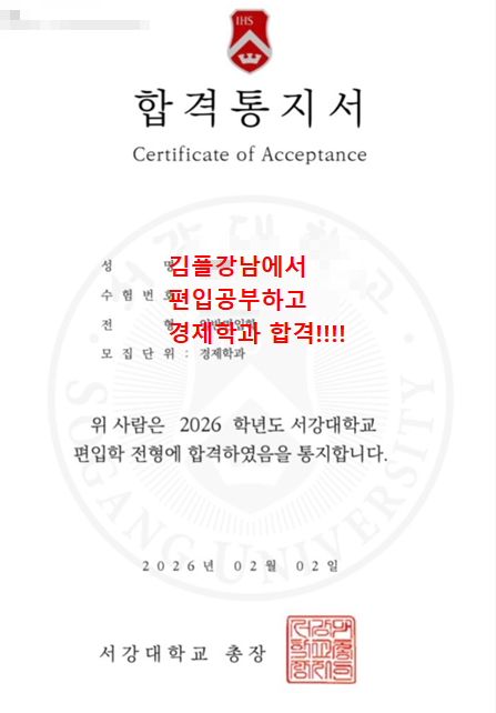[강남편입학원] 1년동안 울면서 공부하고 서강대 포함 4관왕 달성했어요 | 김플강남 편입합격 수기