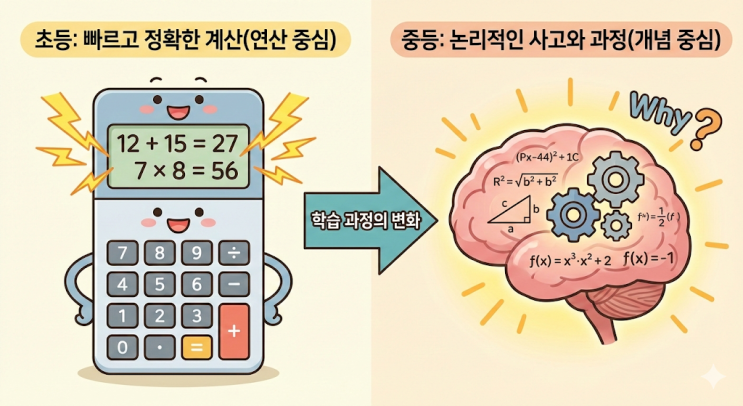 안녕하세요! 초등학교를 성공적으로 마치고, 곧 중학생이라는 새로운 타이틀을 달게 될 예비 중1 학생 여러분, 그리고 학부모님들 진심으로 축하드립니다. 새로운 교복, 새로운 학교, 새로운 친구들... 모든 것이 설레는 3월이지만, 한편으로는 마음 한구석에 묵직한 걱정거리가 하나 자리 잡고 있을 거예요. 네, 맞습니다. 바로 수학입니다. "중학교 수학은 초등학교랑 차원이 다르다던데...", "갑자기 어려워져서 수포자가 많이 생긴다던데..." 이런 무시무시한 소문들 때문에 겁먹고 있지는 않나요? 너무 걱정하지 마세요! 오늘 포스팅에서는 3월, 처음으로 중학생이 되는 여러분이 중1수학을 두려움 없이, 그리고 탄....... <img src="https://blogthumb.pstatic.net/MjAyNjAyMjNfODAg/MDAxNzcxODE1Njc0MDI4.jOF24pUndO9x6zO_oP7O5EsAoOZ6wiAppONVDyeoUhMg.4Q7kQmyGV3O5W8MDflUSQu9r8L5Sym88fKb5HITSOk0g.PNG/image.png?type=s3" />