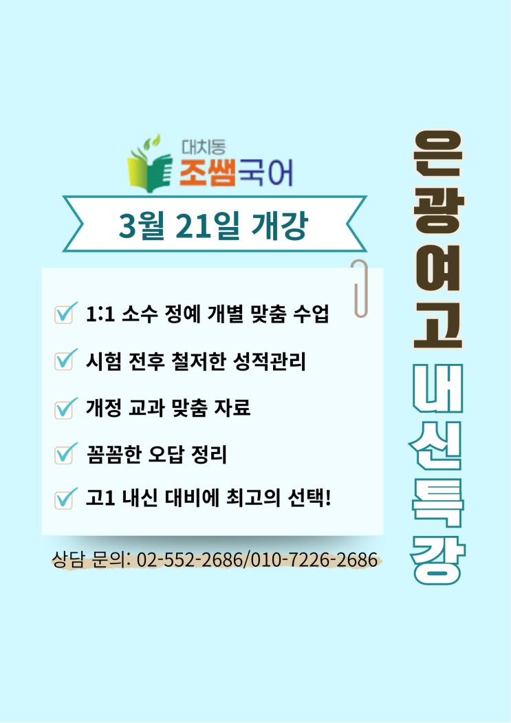 [대치동 조쌤국어] 은광여고 고1 내신 특강반