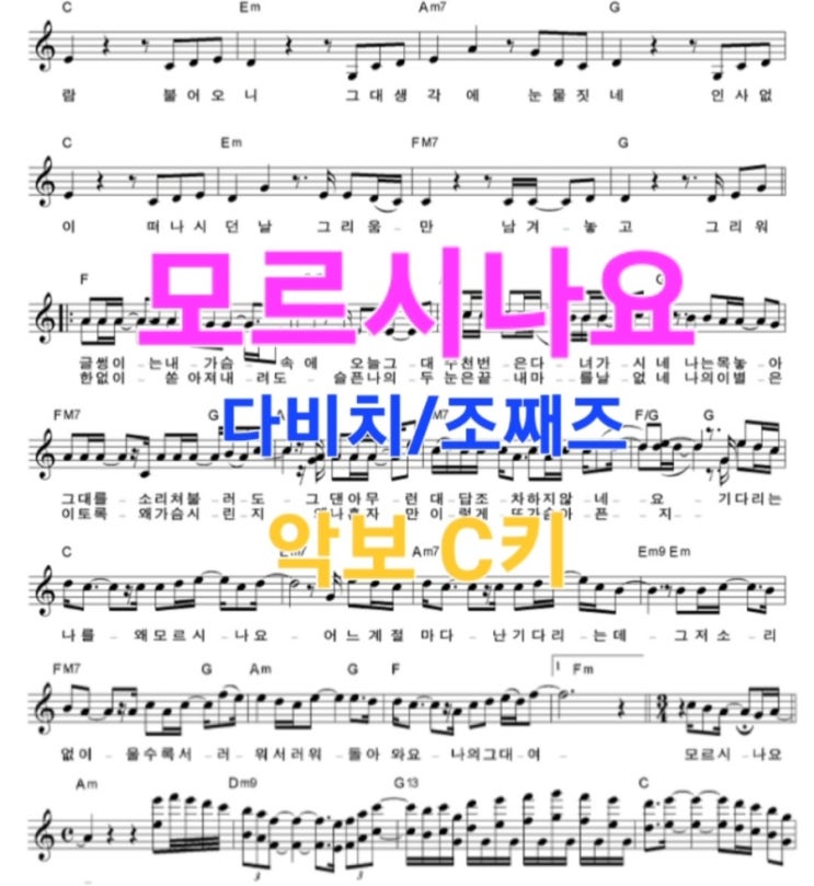 모르시나요-조째즈/다비치/코드악보/대전 동구 기타 학원