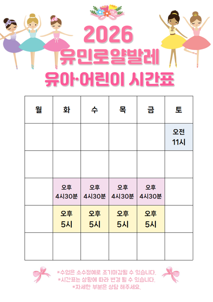 우리 아이 첫 발레 시작은 대전 유민로얄발레학원에서~ 몸도 마음도 예쁘게 자라는 시간 대전키즈발레 / 대전유아발레 수업 안내