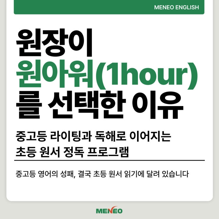 [하안 영어] "중고등 영어의 성패, 결국 초등 원서 읽기에 달려 있습니다" 원장이 원아워(1hour)를 선택한 이유
