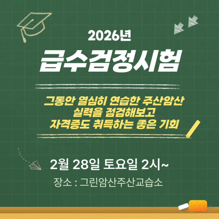 우리 그린 친구들은 할수있다! 특별히 연습하지 않아도 평소 실력으로.. 주산도 암산도 도전!! 힘내보자!!! <img src="https://blogthumb.pstatic.net/MjAyNjAyMDlfMTcw/MDAxNzcwNjQ1OTg1OTgz.JESIUei8jYVTwvQppFYLF6lA-_M-TQ8ehy3_5vW4Euwg.CfyhPd3yUPJi0xGNilGp7-nUD9aaz2v1UaQRSnFYr7Ug.PNG/900%A3%DF1770349625666.png?type=s3" />