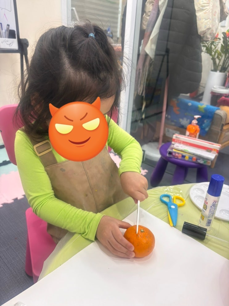 오늘 이매진 아트 그라운드에서는 아이들과 함께 향긋한 감귤을 활용한 푸드아트 놀이를 진행했어요 :) 단순히 먹는 과일이 아니라, 보고, 만지고, 찢고, 붙이며 오감을 자극하는 감각놀이 + 미술놀이로 확장된 시간이었답니다. ✨ 1. 감귤 탐색하기 아이들은 먼저 감귤을 손으로 만져보고 귤향수도 만들어보며, 껍질을 벗기며 촉감과 향을 느껴보았어요. “선생님! 좋은 냄새 나요!” 이 한마디에 이미 오늘 수업은 성공 ✨ 2. 자유롭게 표현하기 껍질을 찢고, 과육을 꾹 눌러보며 자연스럽게 손 근육을 사용하고 자기만의 방식으로 표현을 시작해요. ✔ 컵에 넣어보기 ✔ 종이에 문질러보기 ✔ 도구를 활용해 짜보기 정답 없는 놀이가 아....... <img src="https://blogthumb.pstatic.net/MjAyNjAzMThfMTEg/MDAxNzczODM5MDM2Mjc0.eswtTmZL3ObcuEyDomqB7zQ9JiyUvq7CtKVppYqjELog.J7Ydvuu5OYrI2-d_IKVi4zXA_wumugWXT9NZ3DLxe3gg.JPEG/output%A3%DF196684079.jpg?type=s3" />
