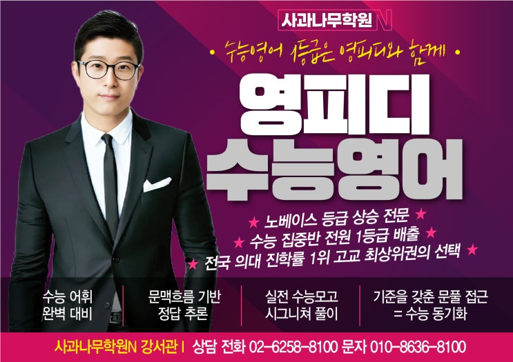 [사과나무학원N_강서] 수능 국어+영어 시크릿 일일 무료특강 !!! 이경태 T - 격이 다른 수능 국어 - √1회 -- 시크릿 -- 무료 특강 과학 기술 지문이 막연한 학생을 위한 논리 구조 처방 왜 최고인지? 왜 등급이 오를 수밖에 없는지? 다시 올 수 없는 기회! 특강에서 확인하세요!! ■ 대상 : 고3/N수생 ■ 일시 : 3/7(토) PM 6:30~8:30 ■ 장소 : 사과나무N 재종관 2 강의실 [사과나무N X 영피디] =[수능 영어 무료 특강] 사과나무N과 함께 1등급 완성 프로젝트 수능 영어 1등급 완성 = 스페셜 리스트 영피디 ---- 고3/N수생---- ■ 교재 : 수능 기출 고난도 문제 샘플 (※시크릿 자료 현장 배부) ■ 내용 : 수능 영어 핵심 유형 영피....... <img src="https://blogthumb.pstatic.net/MjAyNjAzMDNfNzQg/MDAxNzcyNTE2ODUzMDc5.xWMph1X40nucLsAocuW961g0ND4WoLk8rU4rZ725ZLsg.ZdYC1SSUrrLsCfWYixmxjhG5ax4di6EEhZIDbT3VBycg.JPEG/2.19-%BF%B5%C7%C7%B5%F0_%BC%F6%B4%C9%BF%B5%BE%EE%28%BB%E7%B0%FA%B3%AA%B9%AB%C7%D0%BF%F8N%29-01.jpg?type=s3" />