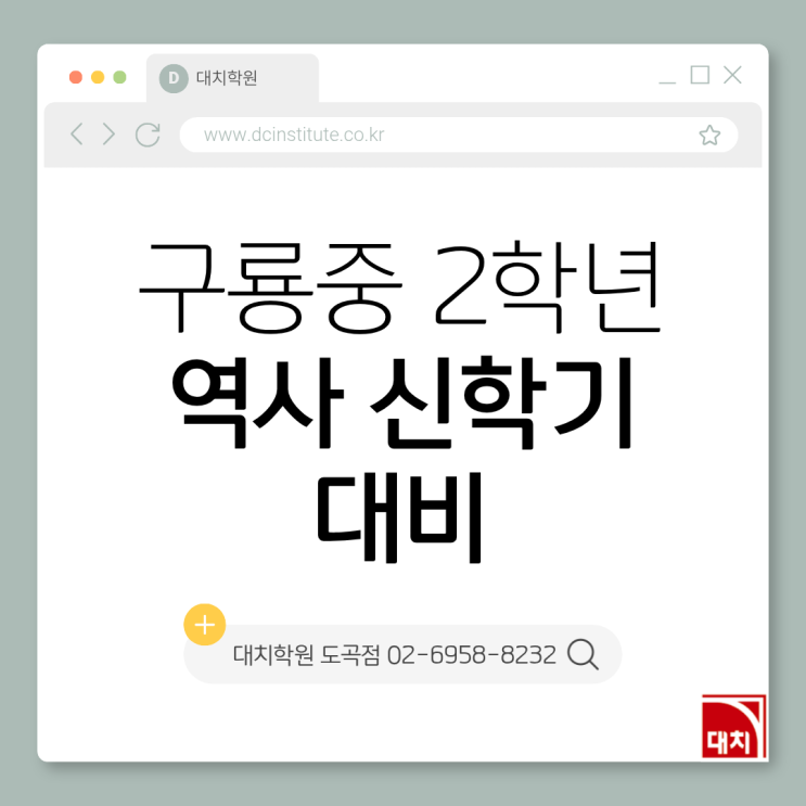 안녕하세요 대치학원입니다. 벌써 1월의 끝자락입니다. 새 학기를 앞두고 설렘과 함께 "이번에는 어떻게 준비해야 할까?" 고민이 많아지는 시기입니다. 특히 역사 과목은 막연히 외워야 할 게 많다고 느껴지지만, 언제부터·어떻게 준비하느냐에 따라 성적 차이가 분명히 나는 과목이기도 합니다. 이번 글에서는 구룡중 역사 내신을 기준으로, 신학기 전에 꼭 잡아야 할 준비 방향과 실제 시험에서 중요한 포인트를 카드뉴스와 함께 정리해보았습니다. 신학기 준비, 지금부터 차분하게 시작해보세요. 구룡중학교 역사 신학기 내신 대비, 이렇게 준비해야 합니다 신학기를 앞두고 많은 학생과 학부모님들이 이렇게 묻습니다. “역사, 그....... <img src="https://blogthumb.pstatic.net/MjAyNjAxMjNfMjQw/MDAxNzY5MTU3NzU1NTgz.bAWItiYLmzkn7L52gWXNJZhSb5LUrb5Kd48VHNKULIUg.V7-8jQFNlRSoWpOjG5eg3khw89PNVnD3uFjVzkLUWhQg.PNG/2.png?type=s3" />