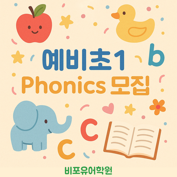 비포유어학원 2026년 예비초1 파닉스반 신규 개설 안내 안녕하세요, 비포유어학원입니다. **예비초등부 파닉스반(신규 개설)**을 아래와 같이 안내드립니다. ✏️ 예비초등부 파닉스반 신규 개설 (12~2월) 수강 대상: 2026년 초등학교 1학년 입학 예정자 기간: 12월 ~ 2월 (총 3개월) 요일·시간: 화/목 5:10~6:00 수업 내용: 파닉스 처음 시작하는 예비 초등학생을 위한 기초 파닉스 알파벳 소리·기본 단어 읽기까지 체계적 지도 3월 신학기부터 초등부 기초반으로 자연스럽게 연계 문의 및 등록 정원이 빠르게 마감되고 있어 선착순으로 접수됩니다. 궁금하신 점은 언제든지 문의 주세요! 감사합니다. 063-467-4168 <img src="https://blogthumb.pstatic.net/MjAyNTExMThfMTEy/MDAxNzYzNDQ4MzU2NTQz.3-tssCsjliOzTAQKptmP_i144RNCP3NS7Xsre1KT9Dog.XsdhQuhwIsXtnW0r5SdtjjFkLE2cONMV35Pimt_LaRMg.JPEG/%BF%B9%BA%F1%C3%CA_%C6%C4%B4%D0%BD%BA.jpg?type=s3" />