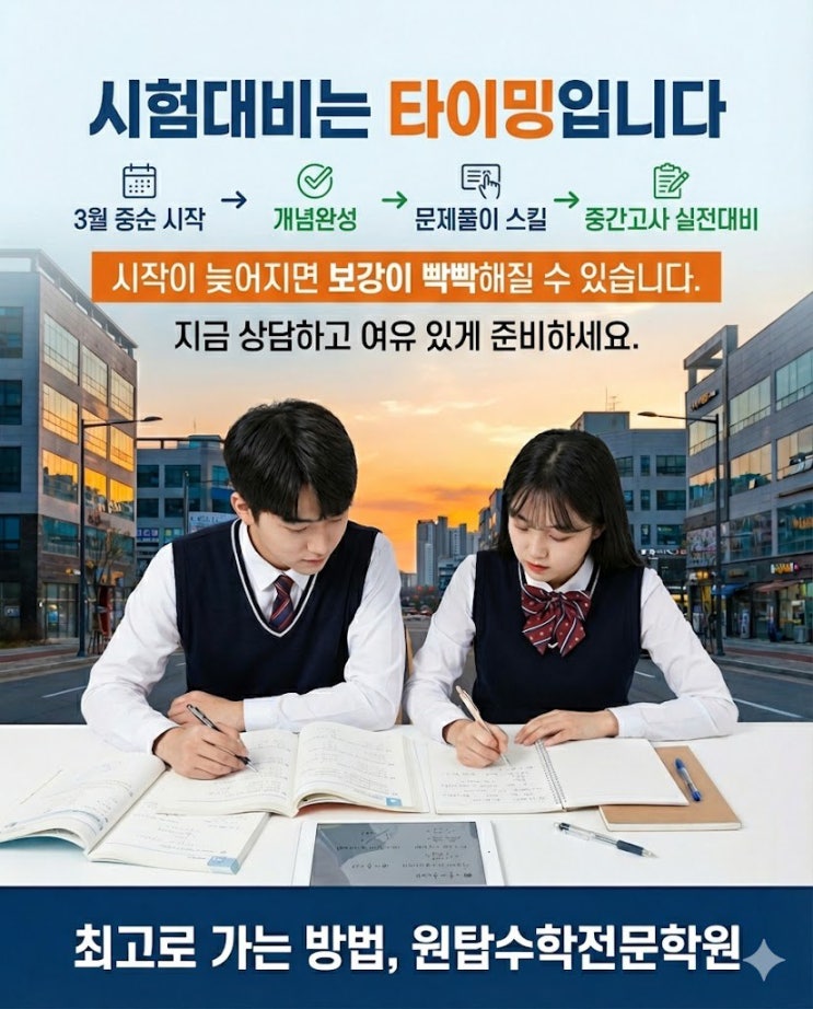 [수완지구 수학학원/수완지구 중등수학] 수완지구 26년 첫 중간고사, 3월 중순부터 준비해야 결과가 달라집니다