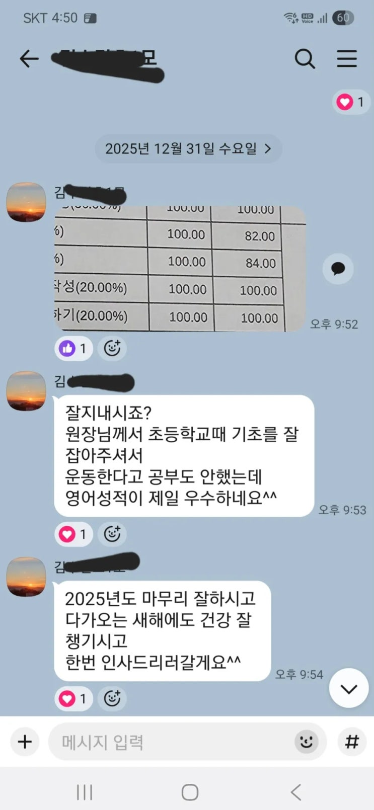 링키영어 혁신 동원2차점 학부모님! 새해 복 많이 받으세요. 새해가 되어 지난 한 해를 조용히 돌아보니 아이들과 함께 웃고, 말하고, 성장했던 시간들이 하나하나 떠오릅니다. 그 시간들을 바탕으로 저희 학원이 '2025년도 본사 선정 우수원'으로 선정되었다는 소식을 전할 수 있어 감사한 마음이 큽니다. 이 결과는 제가 잘해서라기보다 매일 성실하게 참여해준 아이들, 그리고 그 과정을 믿고 지켜봐 주신 학부모님들 덕분이라 생각합니다. 새해에도 지금처럼 우리 아이 한 명 한 명의 속도를 존중하며 즐겁게 성장할 수 있는 영어 시간을 만들어가겠습니다. 2026년, 가정마다 건강과 웃음이 가득하시길 바라며 올....... <img src="https://blogthumb.pstatic.net/MjAyNjAxMDNfMjQx/MDAxNzY3NDE1MTI4NDIw.u-niAteNznKtJw7Ycu2kwnbZYQ2JgGi14st-HpDGPu0g.WzHJxG1YUMArIJKYphdfd7wKiORGOOsAP9zT23lNxFYg.PNG/1767176859168.png?type=s3" />